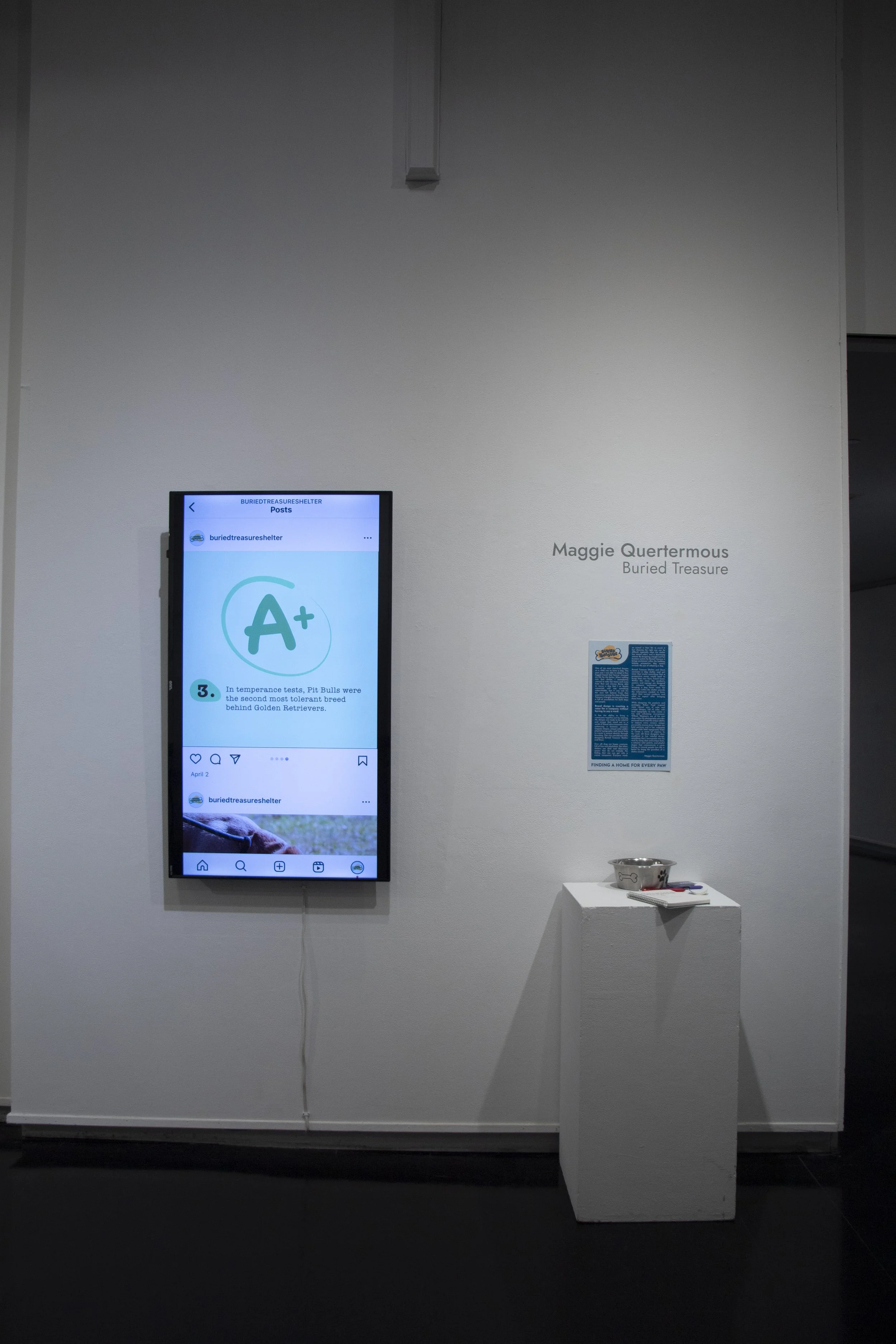 It was important to me that any and all information within this show was as accurate as possible. That also included the dogs on the adoption posters. I was able to partner with a local animal shelter to photograph four of their dogs in hopes of finding them homes during the duration of my exhibition.